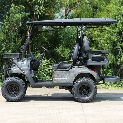 This electric golf/hunting car features 2+2 seating configuration with a small cargo box (Model: FHA2+2), designed for versatile use in various terrains and applications.